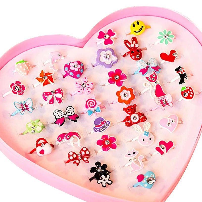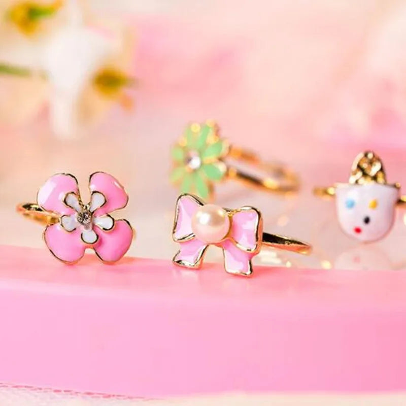 10pcs/lot Love Kids Cute Sweet Rings Design Flower Animal Fashion Jewelry Accessories Girl Child Gifts Finger Rings Random