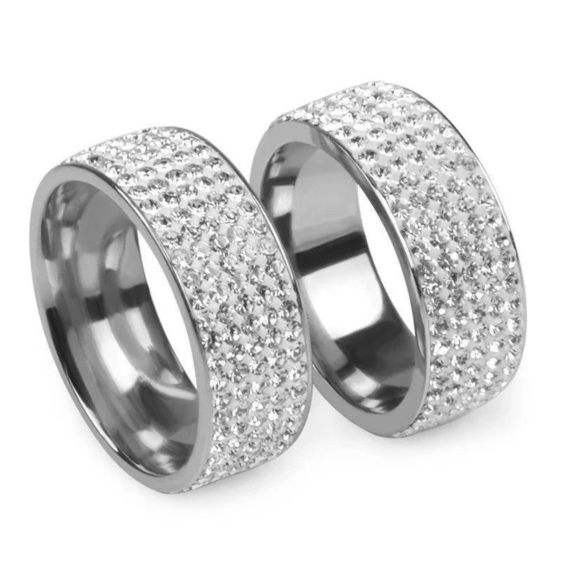 Hip Hop Iced Out Bling Arc Circle Ring Gold Silver Color Stainless Steel Cubic Zirconia Wedding Rings For Women Men Jewelry Gift