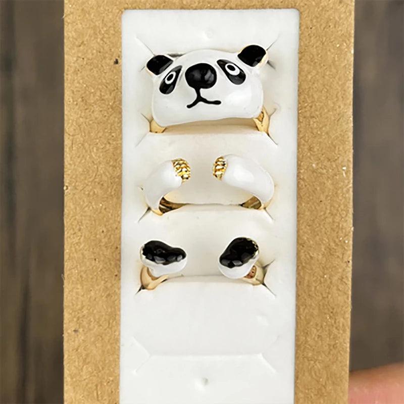 3 Pcs/Set Cute Cartoon Animal Enamel Cat Zebra Deer Panda Metal Combination Rings For Women Girls Jewelry Christmas Gift