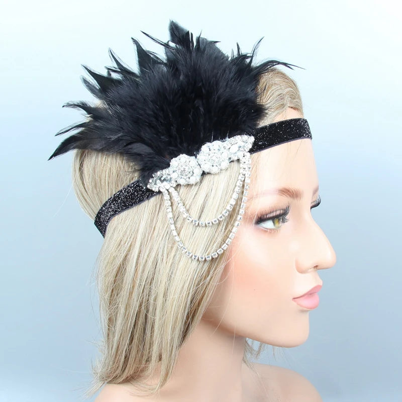 Hot Sale Headband 1920s Makeup Ball Decoration Feather Headband Gatsby Single Party Ladies Headwear Dress Up Feather Headband