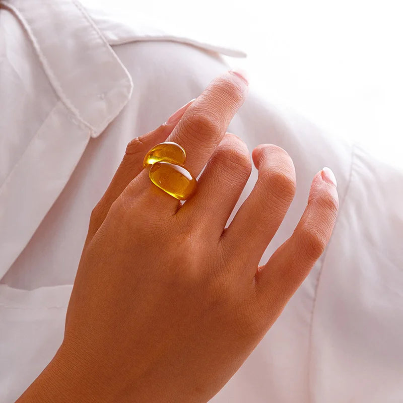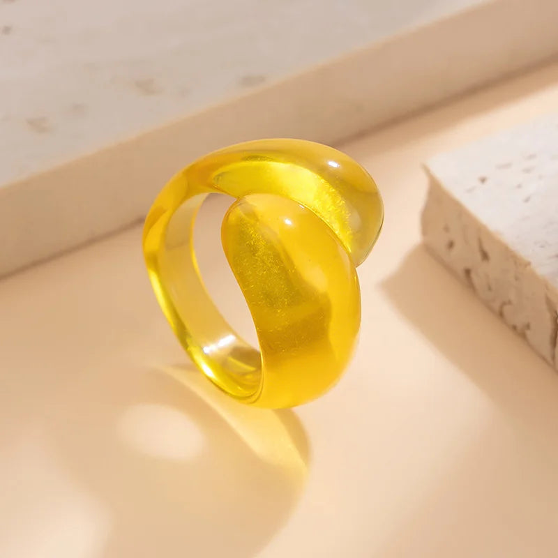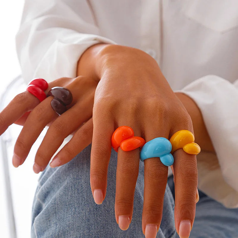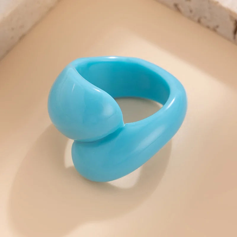 Product Name: 1PC Irregular Geometric Ring Women Colorful Double Droplet Plastic Rings Y2K Fashion Jewelry